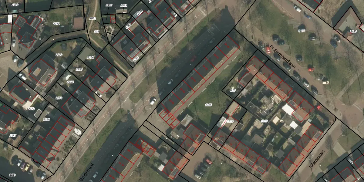 Het perceel waarop Brugstraat 58 staat heeft een oppervlakte van 1742 m². Dit is een zeer groot perceel. De perceeloppervlakte wordt geregistreerd door het Kadaster. Gedetailleerde informatie over de maten van dit perceel kunt u vinden in het rapport Kadastrale kaart met maatvoering van Brugstraat 58.