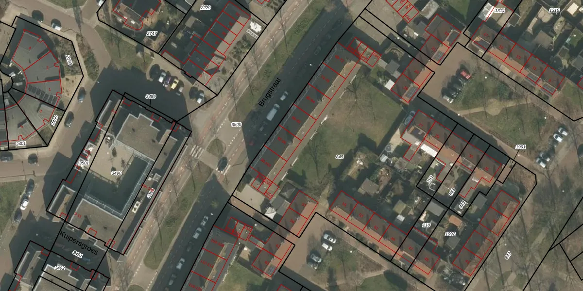 Het perceel waarop Brugstraat 96 staat heeft een oppervlakte van 3505 m². Dit is een zeer groot perceel. De perceeloppervlakte wordt geregistreerd door het Kadaster. Gedetailleerde informatie over de maten van dit perceel kunt u vinden in het rapport Kadastrale kaart met maatvoering van Brugstraat 96.