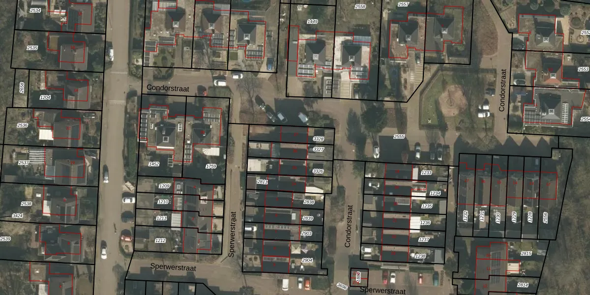 Het perceel waarop Condorstraat 26 staat heeft een oppervlakte van 162 m². Dit is een middelgroot perceel. De perceeloppervlakte wordt geregistreerd door het Kadaster. Gedetailleerde informatie over de maten van dit perceel kunt u vinden in het rapport Kadastrale kaart met maatvoering van Condorstraat 26.