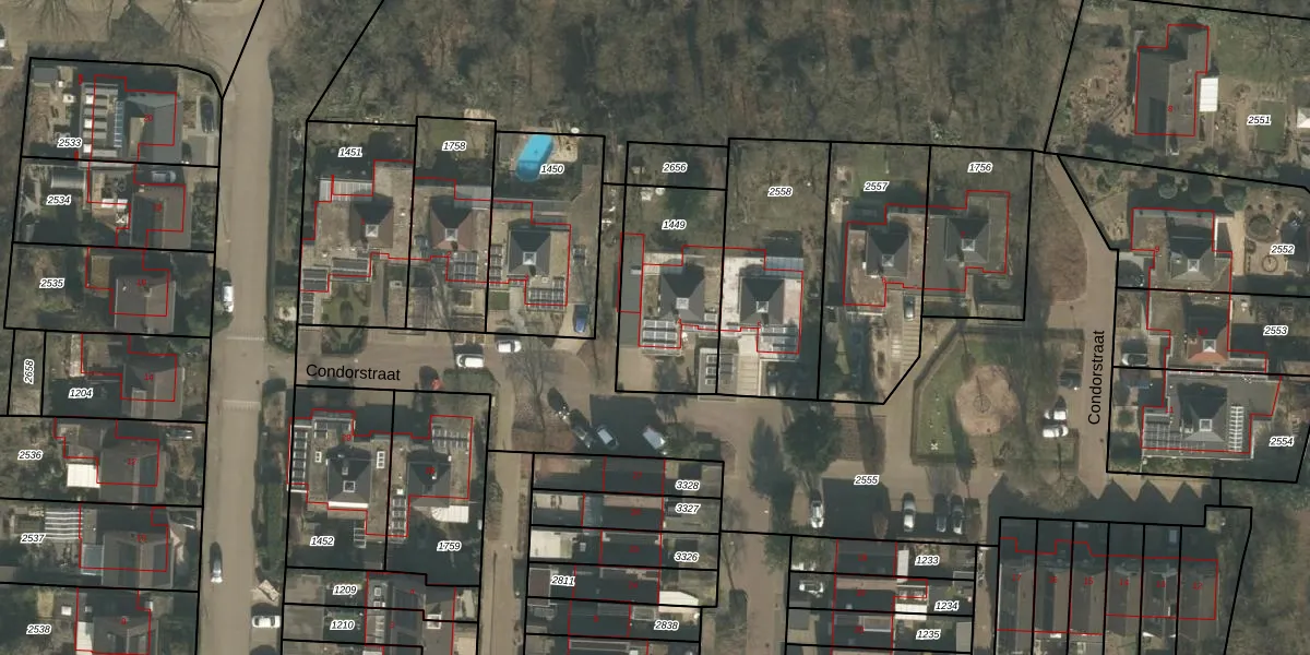 Het perceel waarop Condorstraat 4 staat heeft een oppervlakte van 485 m². Dit is een groot perceel. De perceeloppervlakte wordt geregistreerd door het Kadaster. Gedetailleerde informatie over de maten van dit perceel kunt u vinden in het rapport Kadastrale kaart met maatvoering van Condorstraat 4.
