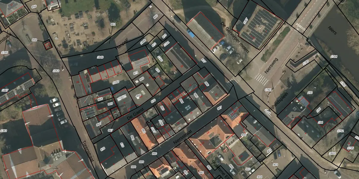 De Gaest 13 is gelegen op kadastraal perceel GNP00C884. Deze kadastrale aanduiding is uniek en wordt gebruikt door het Kadaster om eigendomsrechten en andere zakelijke rechten vast te leggen. Het perceel maakt onderdeel uit van de kadastrale gemeente Gennep.