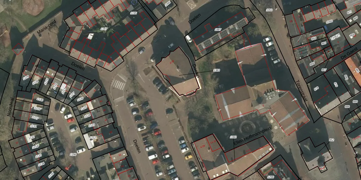 Het perceel waarop Doelen 14 staat heeft een oppervlakte van 364 m². Dit is een groot perceel. De perceeloppervlakte wordt geregistreerd door het Kadaster. Gedetailleerde informatie over de maten van dit perceel kunt u vinden in het rapport Kadastrale kaart met maatvoering van Doelen 14.