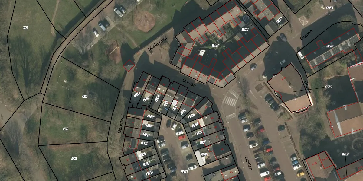 Het perceel waarop Doelen 37 staat heeft een oppervlakte van 102 m². Dit is een middelgroot perceel. De perceeloppervlakte wordt geregistreerd door het Kadaster. Gedetailleerde informatie over de maten van dit perceel kunt u vinden in het rapport Kadastrale kaart met maatvoering van Doelen 37.