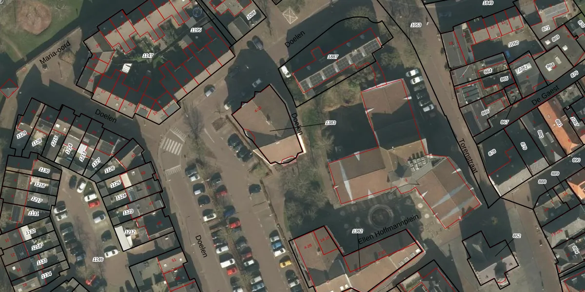 Het perceel waarop Doelen 4 staat heeft een oppervlakte van 364 m². Dit is een groot perceel. De perceeloppervlakte wordt geregistreerd door het Kadaster. Gedetailleerde informatie over de maten van dit perceel kunt u vinden in het rapport Kadastrale kaart met maatvoering van Doelen 4.