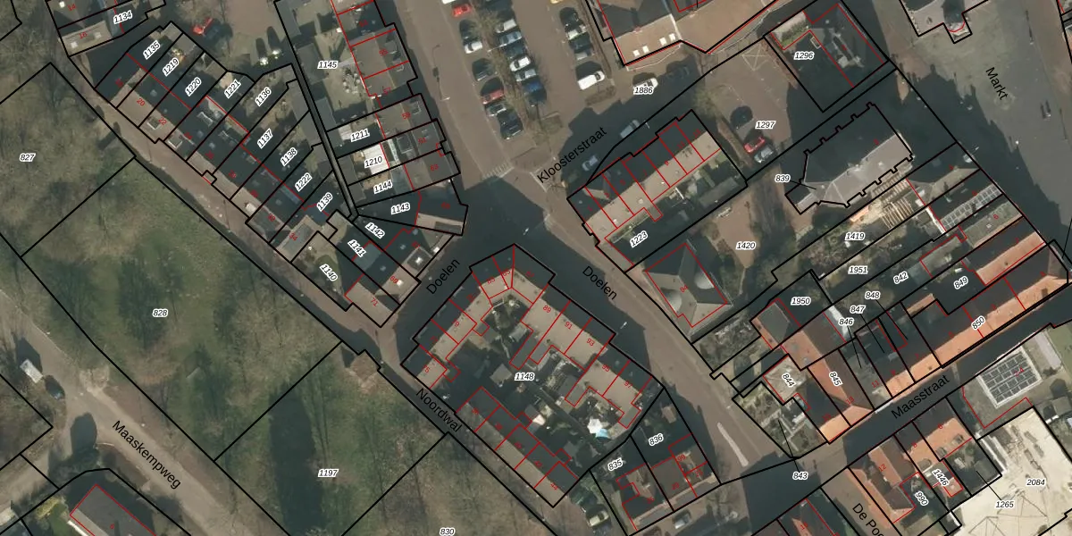 Doelen 87 is gelegen op kadastraal perceel GNP00C1148. Deze kadastrale aanduiding is uniek en wordt gebruikt door het Kadaster om eigendomsrechten en andere zakelijke rechten vast te leggen. Het perceel maakt onderdeel uit van de kadastrale gemeente Gennep.