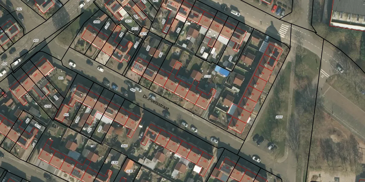 Dr.Poelsstraat 18 is gelegen op kadastraal perceel GNP00D1133. Deze kadastrale aanduiding is uniek en wordt gebruikt door het Kadaster om eigendomsrechten en andere zakelijke rechten vast te leggen. Het perceel maakt onderdeel uit van de kadastrale gemeente Gennep.