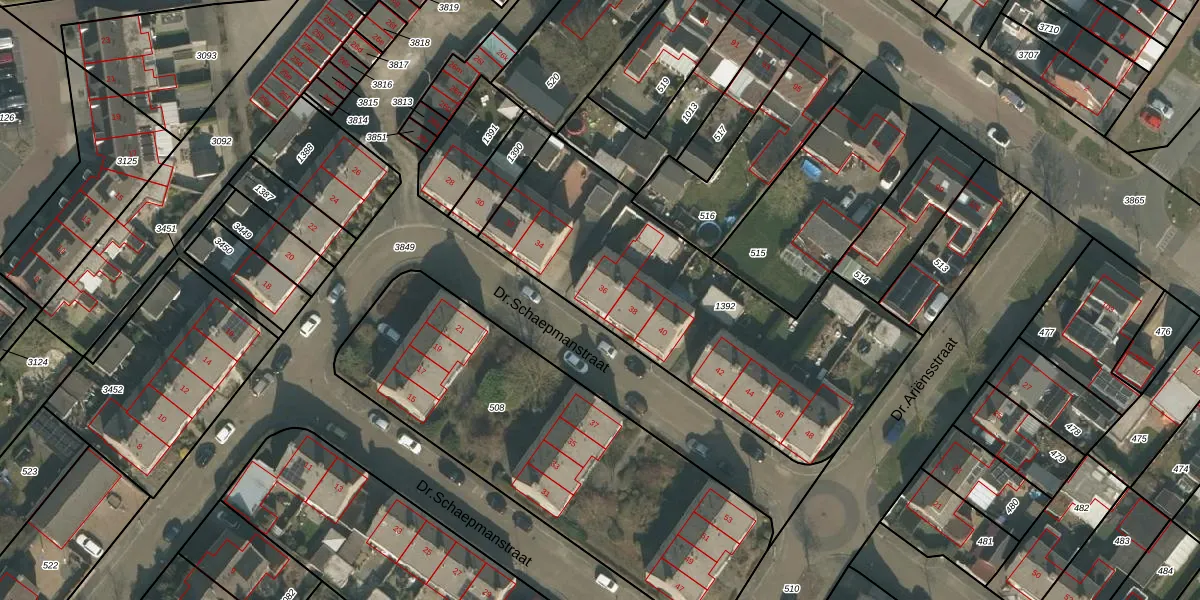 Dr.Schaepmanstraat 36 is gelegen op kadastraal perceel GNP00D1392. Deze kadastrale aanduiding is uniek en wordt gebruikt door het Kadaster om eigendomsrechten en andere zakelijke rechten vast te leggen. Het perceel maakt onderdeel uit van de kadastrale gemeente Gennep.