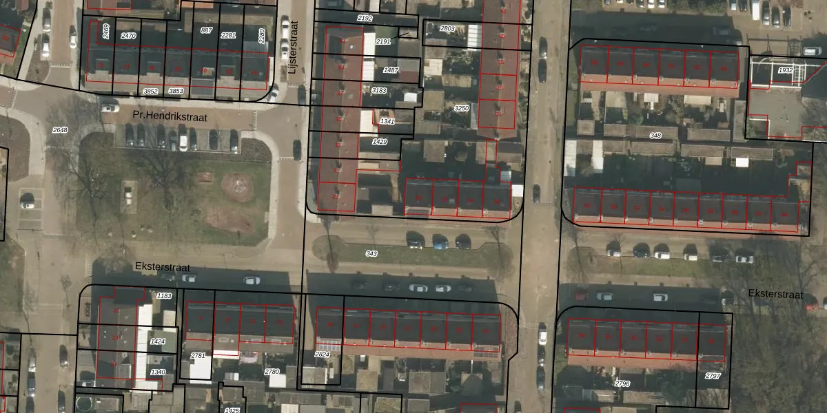 Het perceel waarop Eksterstraat 20 staat heeft een oppervlakte van 2118 m². Dit is een zeer groot perceel. De perceeloppervlakte wordt geregistreerd door het Kadaster. Gedetailleerde informatie over de maten van dit perceel kunt u vinden in het rapport Kadastrale kaart met maatvoering van Eksterstraat 20.