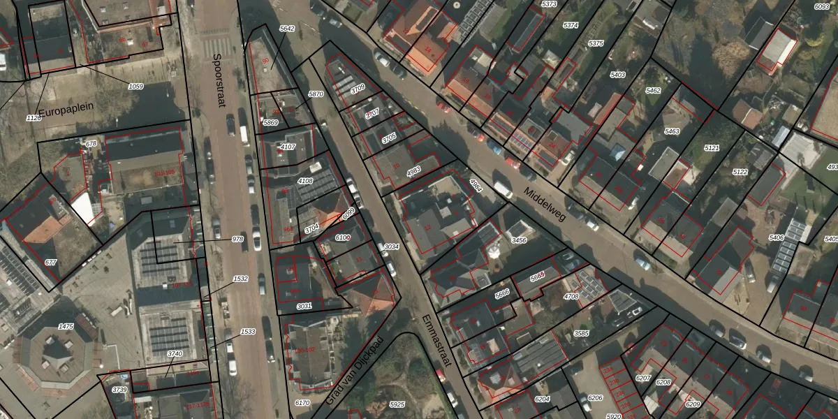 Het perceel waarop Emmastraat 12 staat heeft een oppervlakte van 442 m². Dit is een groot perceel. De perceeloppervlakte wordt geregistreerd door het Kadaster. Gedetailleerde informatie over de maten van dit perceel kunt u vinden in het rapport Kadastrale kaart met maatvoering van Emmastraat 12.