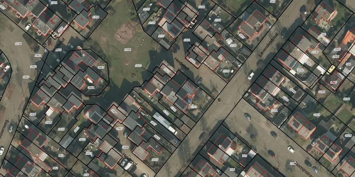 Het perceel waarop Heidehof 2 staat heeft een oppervlakte van 242 m². Dit is een middelgroot perceel. De perceeloppervlakte wordt geregistreerd door het Kadaster. Gedetailleerde informatie over de maten van dit perceel kunt u vinden in het rapport Kadastrale kaart met maatvoering van Heidehof 2.