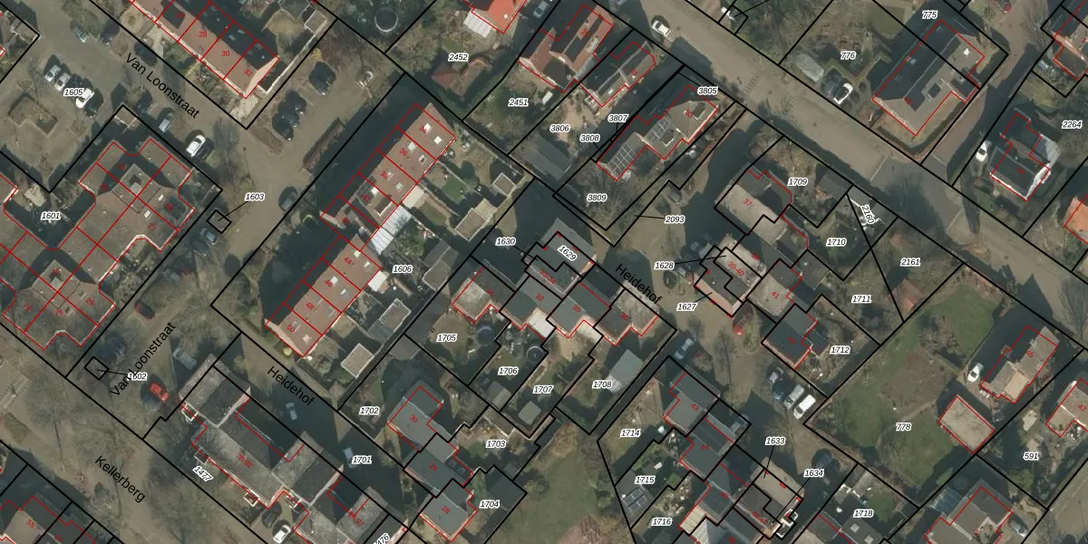 Het perceel waarop Heidehof 33 staat heeft een oppervlakte van 41 m². Dit is een klein perceel. De perceeloppervlakte wordt geregistreerd door het Kadaster. Gedetailleerde informatie over de maten van dit perceel kunt u vinden in het rapport Kadastrale kaart met maatvoering van Heidehof 33.