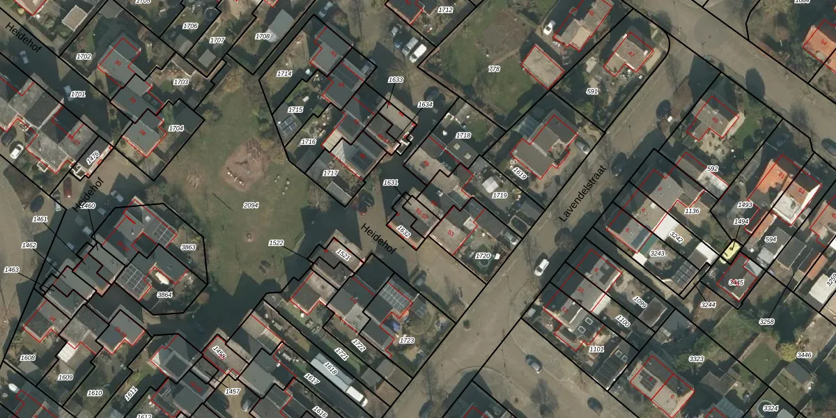 Het perceel waarop Heidehof 51 staat heeft een oppervlakte van 41 m². Dit is een klein perceel. De perceeloppervlakte wordt geregistreerd door het Kadaster. Gedetailleerde informatie over de maten van dit perceel kunt u vinden in het rapport Kadastrale kaart met maatvoering van Heidehof 51.
