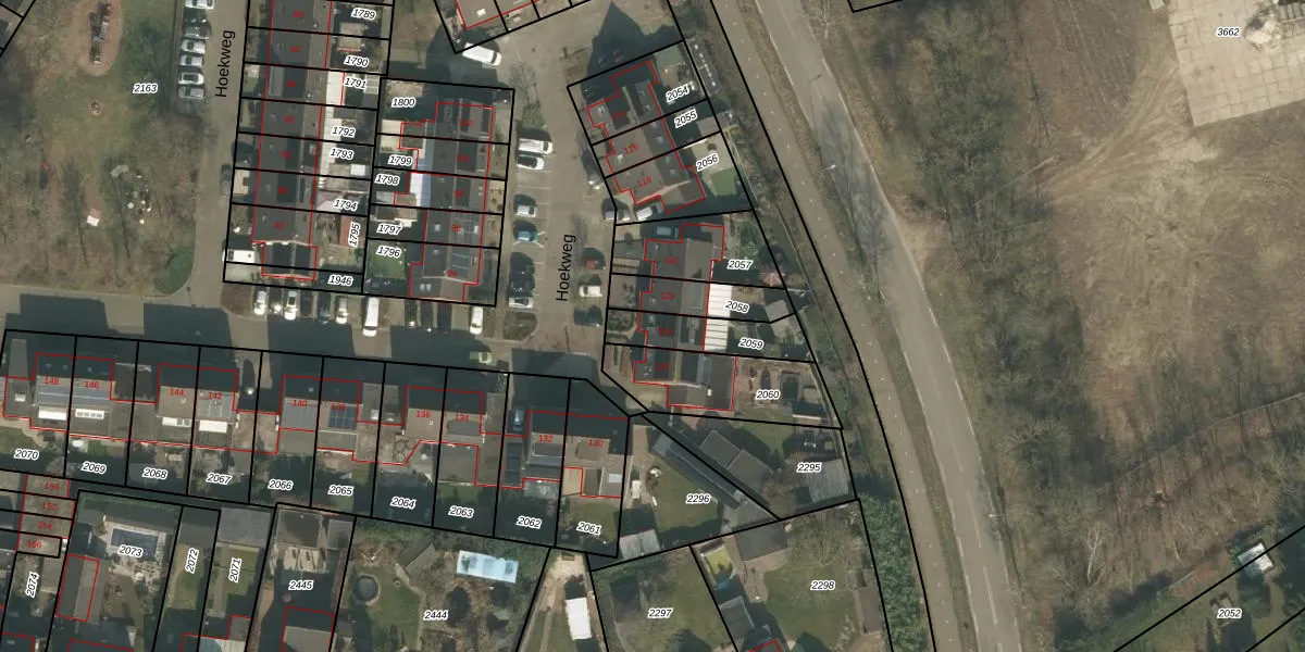 Hoekweg 124 is gelegen op kadastraal perceel GNP00D2059. Deze kadastrale aanduiding is uniek en wordt gebruikt door het Kadaster om eigendomsrechten en andere zakelijke rechten vast te leggen. Het perceel maakt onderdeel uit van de kadastrale gemeente Gennep.