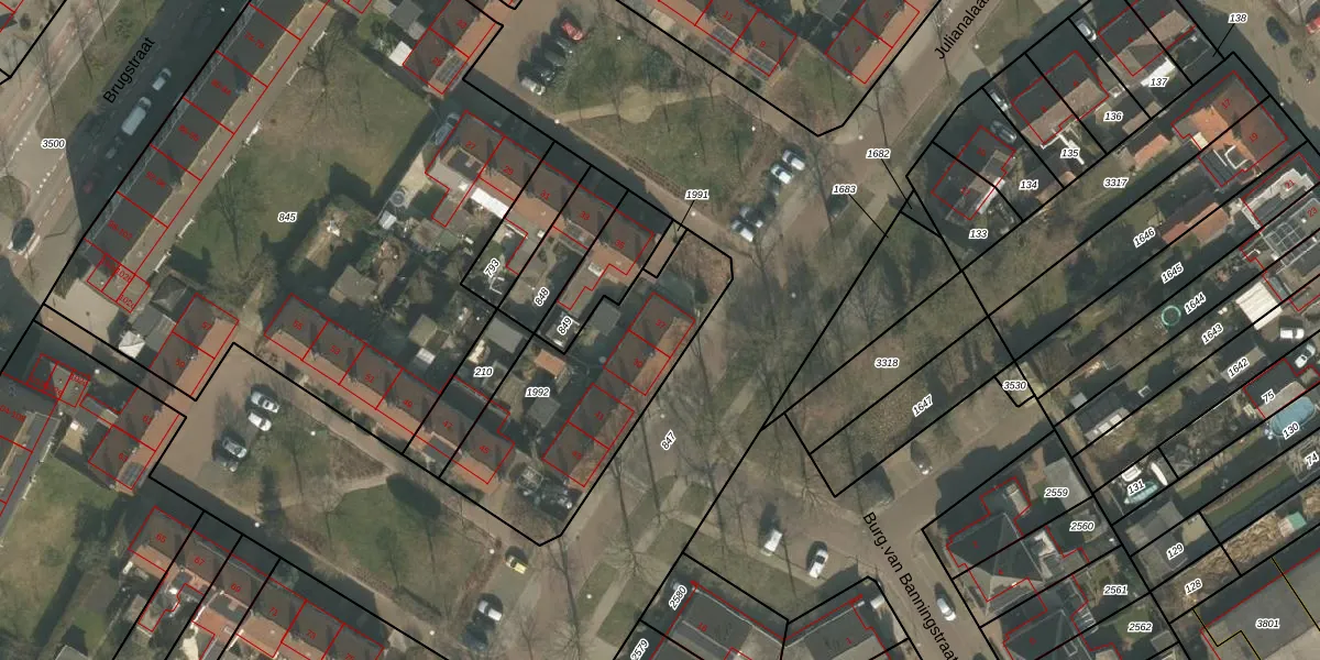 Julianalaan 37 is gelegen op kadastraal perceel GNP00D1992. Deze kadastrale aanduiding is uniek en wordt gebruikt door het Kadaster om eigendomsrechten en andere zakelijke rechten vast te leggen. Het perceel maakt onderdeel uit van de kadastrale gemeente Gennep.