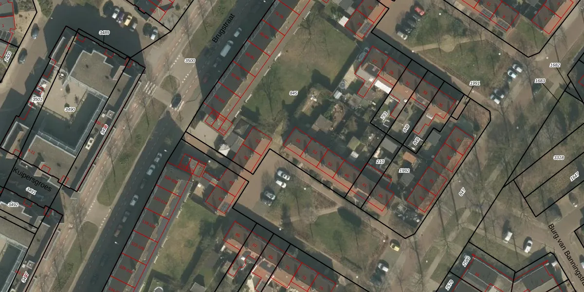 Het perceel waarop het adres ligt is GNP00-D-845. De afkorting 'GNP00' staat voor kadastrale gemeente Gennep. De gemiddelde perceelgrootte in Gennep is 3615,69 m². Dit perceel is kleiner: de perceeloppervlakte bedraagt 3505 m². Het kleinste perceel in de kadastrale gemeente is 0 m² groot. De grootste perceeloppervlakte is 54,6 ha. Op het perceel liggen in totaal 35 adressen. In de Basisregistratie Kadaster (BRK) werden de grenzen van het perceel geregistreerd op 12-10-2007.