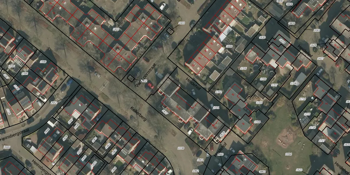 Het perceel waarop Kellerberg 84 staat heeft een oppervlakte van 800 m². Dit is een groot perceel. De perceeloppervlakte wordt geregistreerd door het Kadaster. Gedetailleerde informatie over de maten van dit perceel kunt u vinden in het rapport Kadastrale kaart met maatvoering van Kellerberg 84.