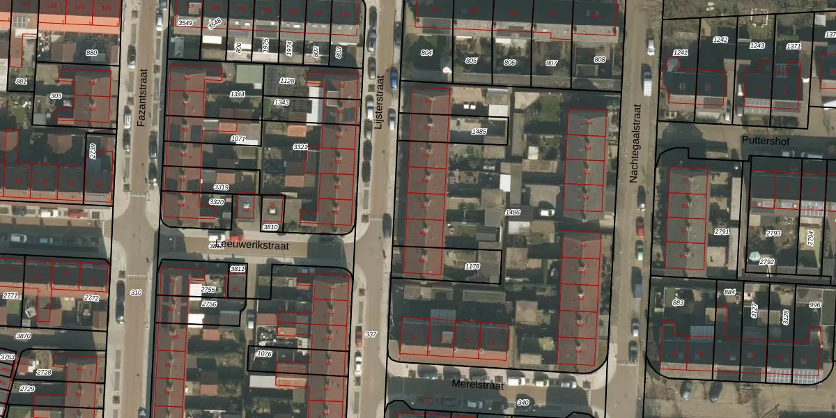 Het perceel waarop Lijsterstraat 47 staat heeft een oppervlakte van 3195 m². Dit is een zeer groot perceel. De perceeloppervlakte wordt geregistreerd door het Kadaster. Gedetailleerde informatie over de maten van dit perceel kunt u vinden in het rapport Kadastrale kaart met maatvoering van Lijsterstraat 47.