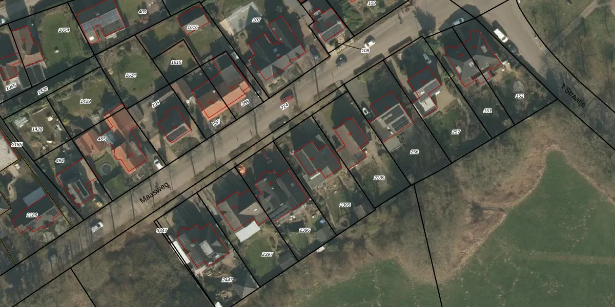 Het perceel waarop Maasweg 38 staat heeft een oppervlakte van 560 m². Dit is een groot perceel. De perceeloppervlakte wordt geregistreerd door het Kadaster. Gedetailleerde informatie over de maten van dit perceel kunt u vinden in het rapport Kadastrale kaart met maatvoering van Maasweg 38.