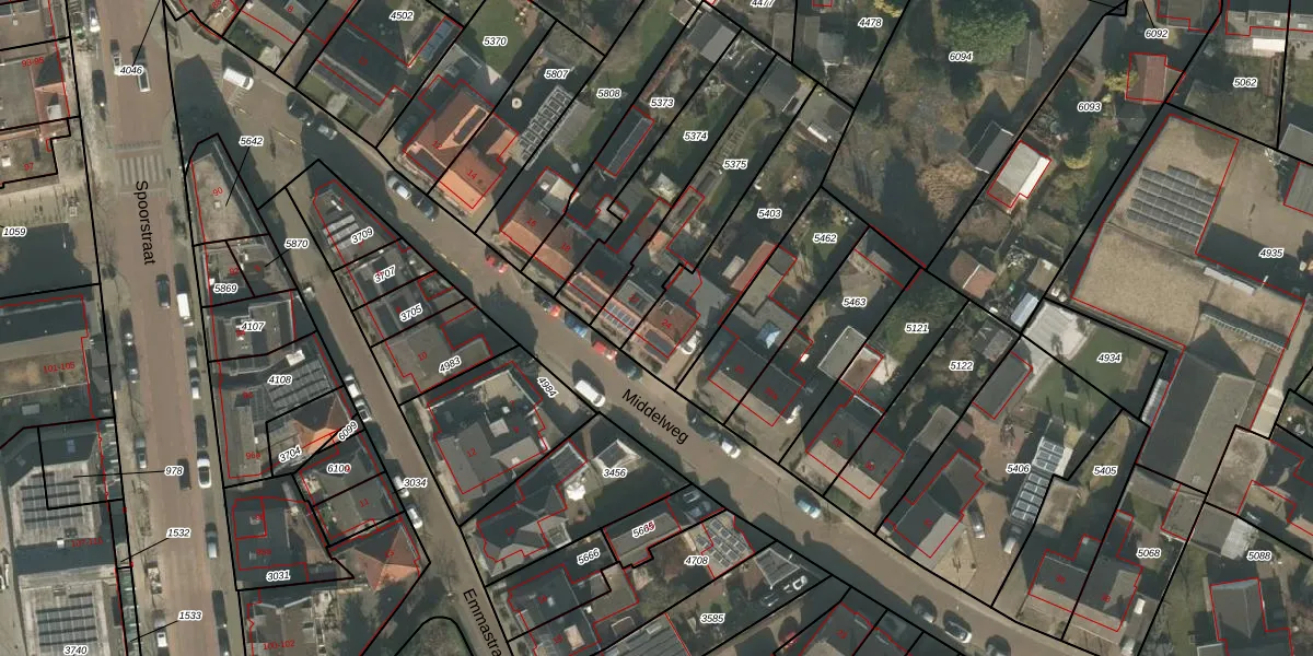 Middelweg 24 is gelegen op kadastraal perceel GNP00B5403. Deze kadastrale aanduiding is uniek en wordt gebruikt door het Kadaster om eigendomsrechten en andere zakelijke rechten vast te leggen. Het perceel maakt onderdeel uit van de kadastrale gemeente Gennep.