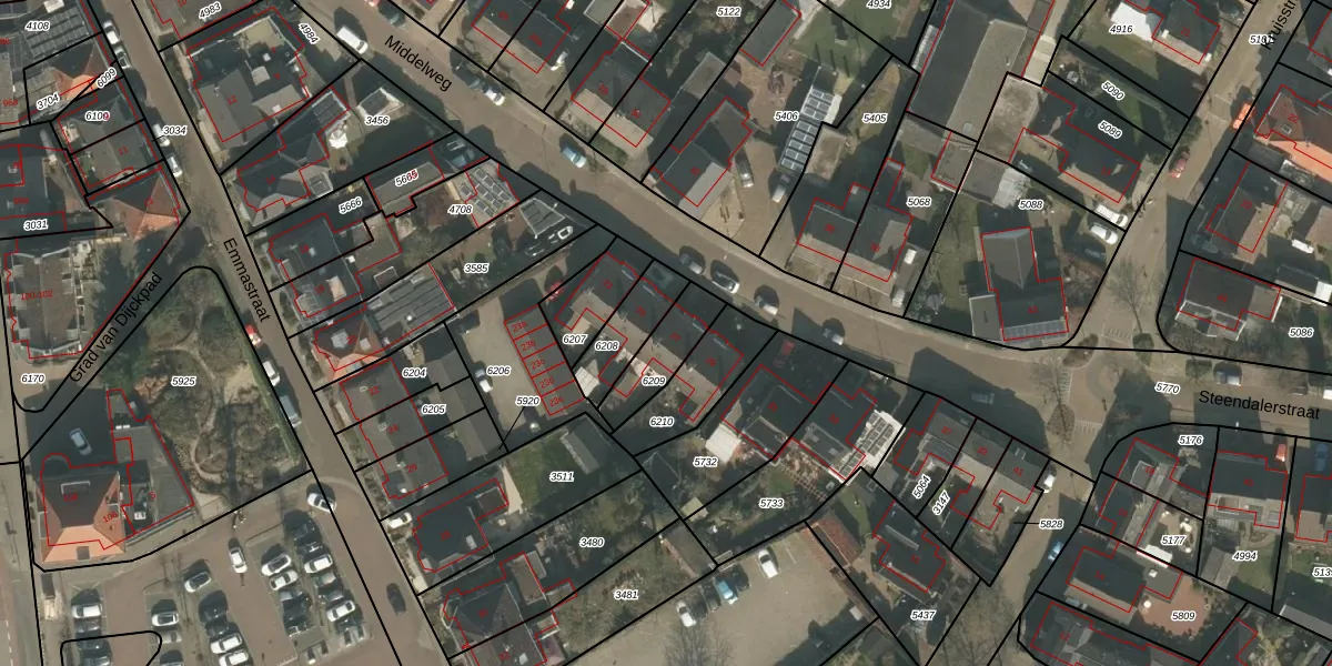 Middelweg 27 is gelegen op kadastraal perceel GNP00B6209. Deze kadastrale aanduiding is uniek en wordt gebruikt door het Kadaster om eigendomsrechten en andere zakelijke rechten vast te leggen. Het perceel maakt onderdeel uit van de kadastrale gemeente Gennep.