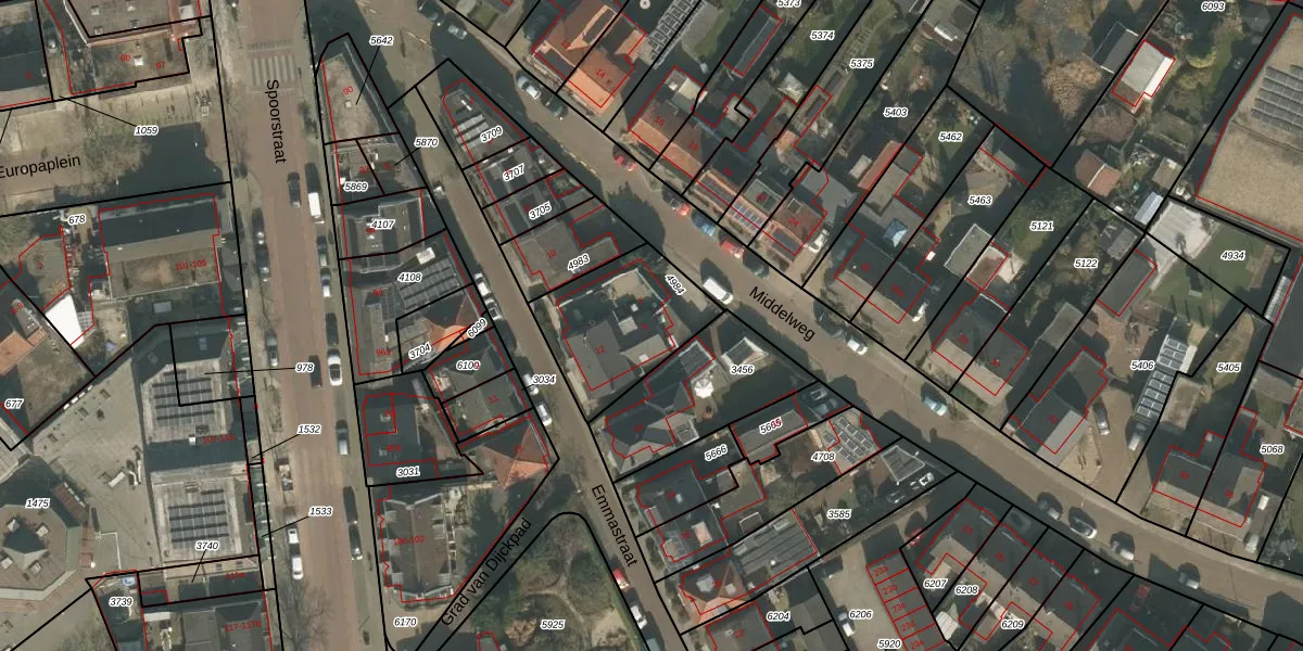 Middelweg 9 is gelegen op kadastraal perceel GNP00B4984. Deze kadastrale aanduiding is uniek en wordt gebruikt door het Kadaster om eigendomsrechten en andere zakelijke rechten vast te leggen. Het perceel maakt onderdeel uit van de kadastrale gemeente Gennep.