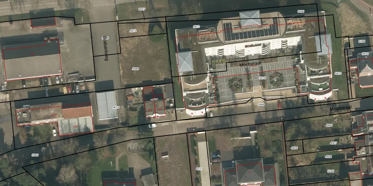 Moutstraat 119 is gelegen op kadastraal perceel GNP00B5974. Deze kadastrale aanduiding is uniek en wordt gebruikt door het Kadaster om eigendomsrechten en andere zakelijke rechten vast te leggen. Het perceel maakt onderdeel uit van de kadastrale gemeente Gennep.