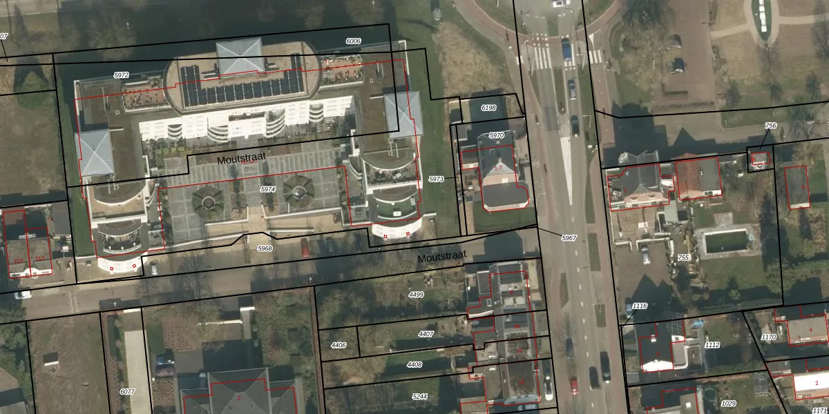 Moutstraat 37 is gelegen op kadastraal perceel GNP00B5974. Deze kadastrale aanduiding is uniek en wordt gebruikt door het Kadaster om eigendomsrechten en andere zakelijke rechten vast te leggen. Het perceel maakt onderdeel uit van de kadastrale gemeente Gennep.