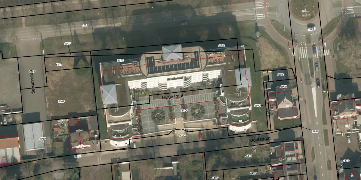 Moutstraat 63 is gelegen op kadastraal perceel GNP00B5972. Deze kadastrale aanduiding is uniek en wordt gebruikt door het Kadaster om eigendomsrechten en andere zakelijke rechten vast te leggen. Het perceel maakt onderdeel uit van de kadastrale gemeente Gennep.
