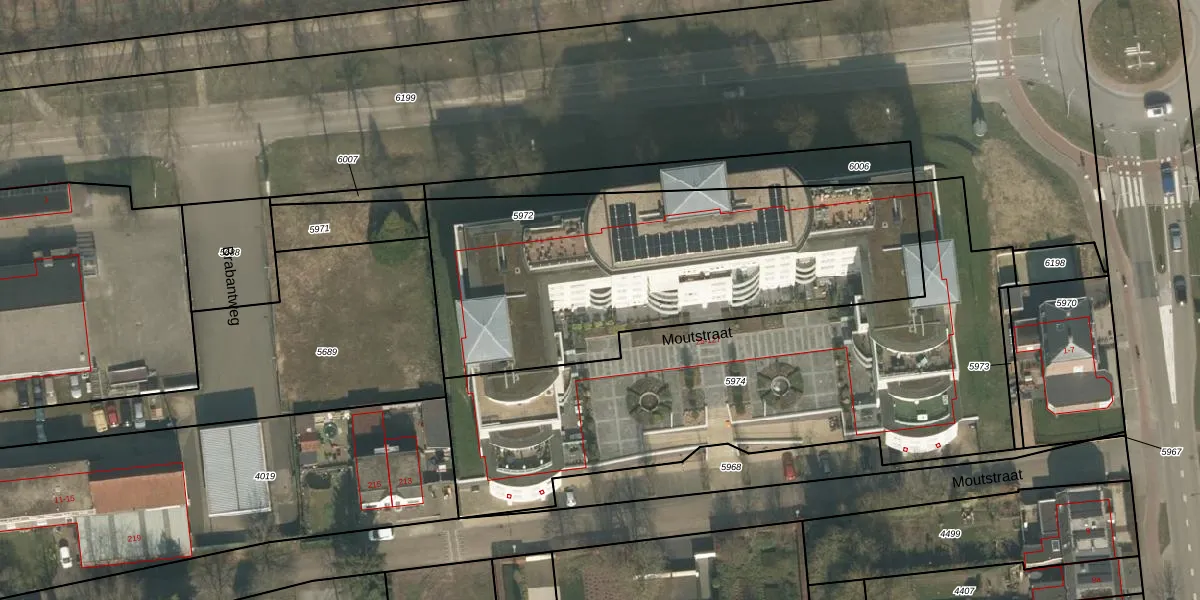 Moutstraat 95 is gelegen op kadastraal perceel GNP00B5972. Deze kadastrale aanduiding is uniek en wordt gebruikt door het Kadaster om eigendomsrechten en andere zakelijke rechten vast te leggen. Het perceel maakt onderdeel uit van de kadastrale gemeente Gennep.