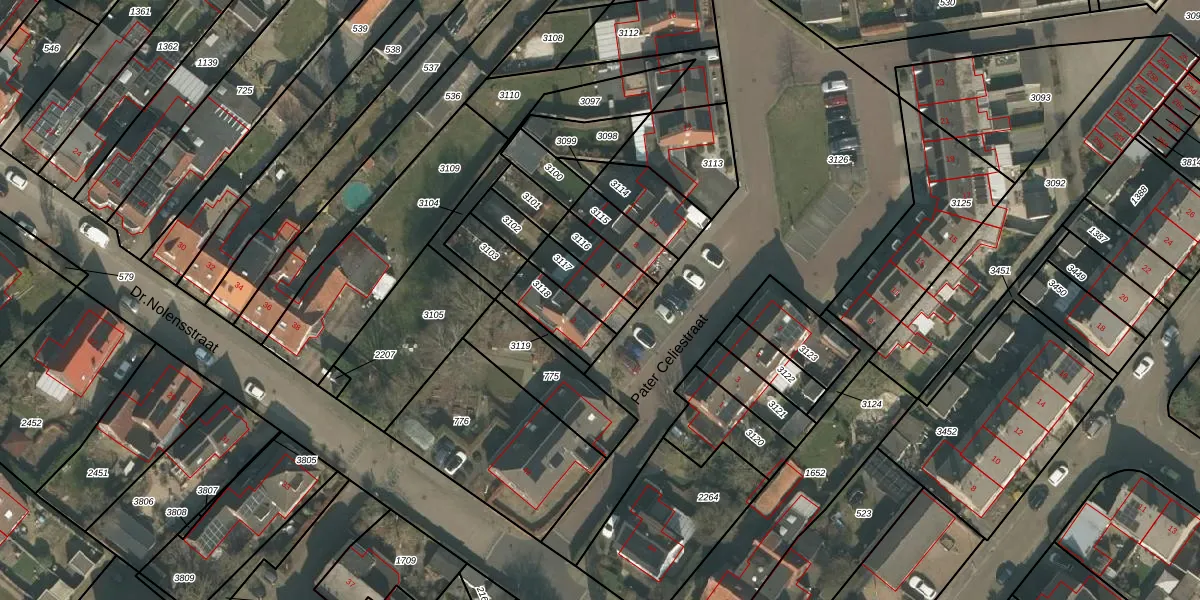 Pater Celiestraat 4 is gelegen op kadastraal perceel GNP00D3117. Deze kadastrale aanduiding is uniek en wordt gebruikt door het Kadaster om eigendomsrechten en andere zakelijke rechten vast te leggen. Het perceel maakt onderdeel uit van de kadastrale gemeente Gennep.
