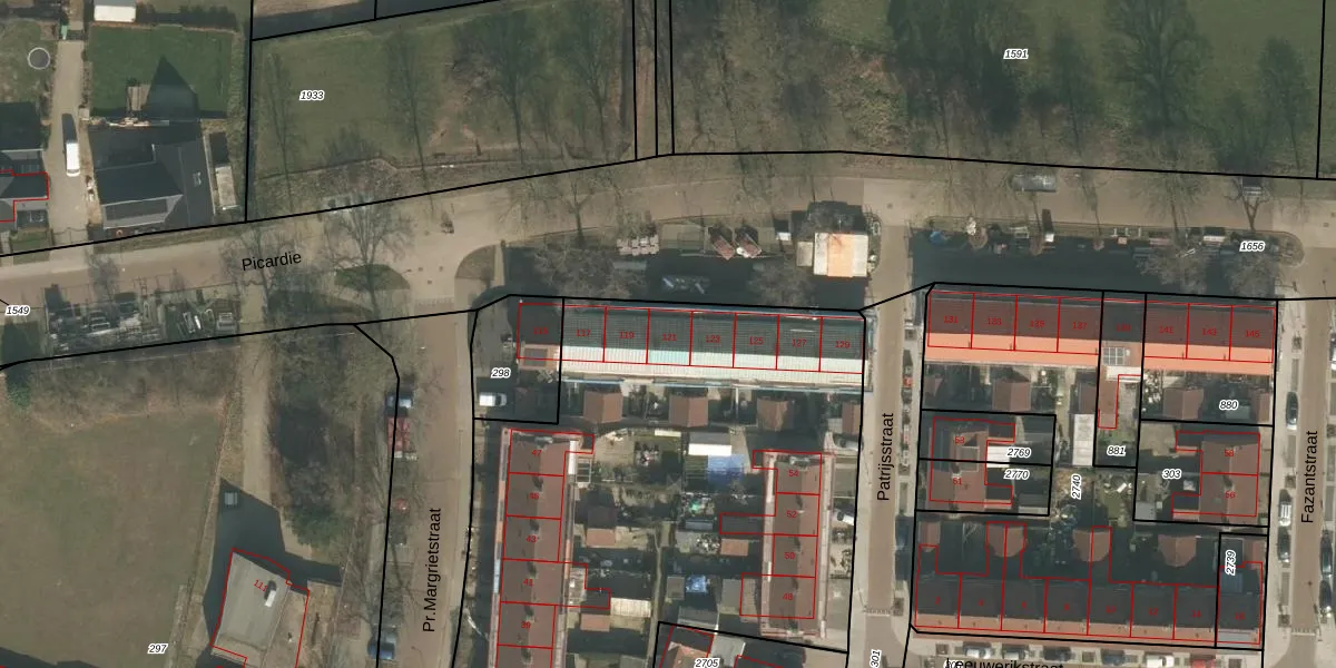 Het perceel waarop Picardie 121 staat heeft een oppervlakte van 4233 m². Dit is een zeer groot perceel. De perceeloppervlakte wordt geregistreerd door het Kadaster. Gedetailleerde informatie over de maten van dit perceel kunt u vinden in het rapport Kadastrale kaart met maatvoering van Picardie 121.