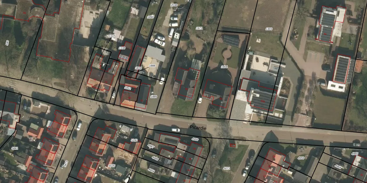 Het perceel waarop Picardie 80 staat heeft een oppervlakte van 1660 m². Dit is een zeer groot perceel. De perceeloppervlakte wordt geregistreerd door het Kadaster. Gedetailleerde informatie over de maten van dit perceel kunt u vinden in het rapport Kadastrale kaart met maatvoering van Picardie 80.