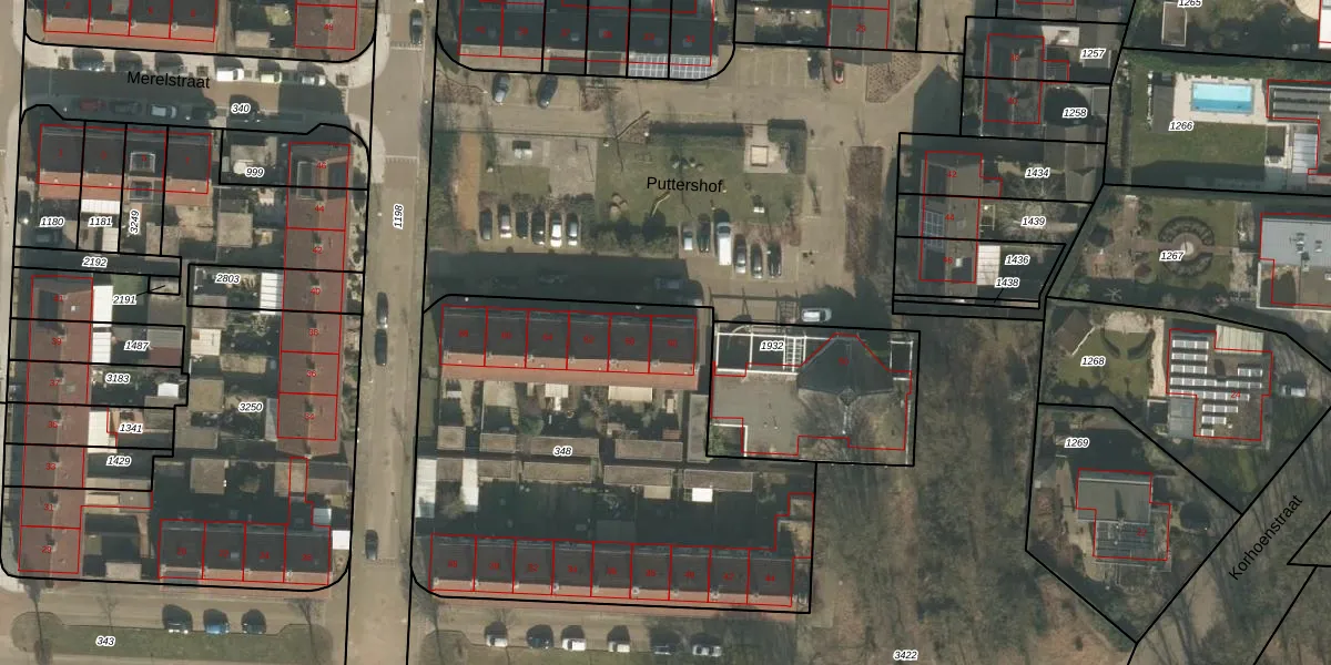 Het perceel waarop Puttershof 58 staat heeft een oppervlakte van 2320 m². Dit is een zeer groot perceel. De perceeloppervlakte wordt geregistreerd door het Kadaster. Gedetailleerde informatie over de maten van dit perceel kunt u vinden in het rapport Kadastrale kaart met maatvoering van Puttershof 58.