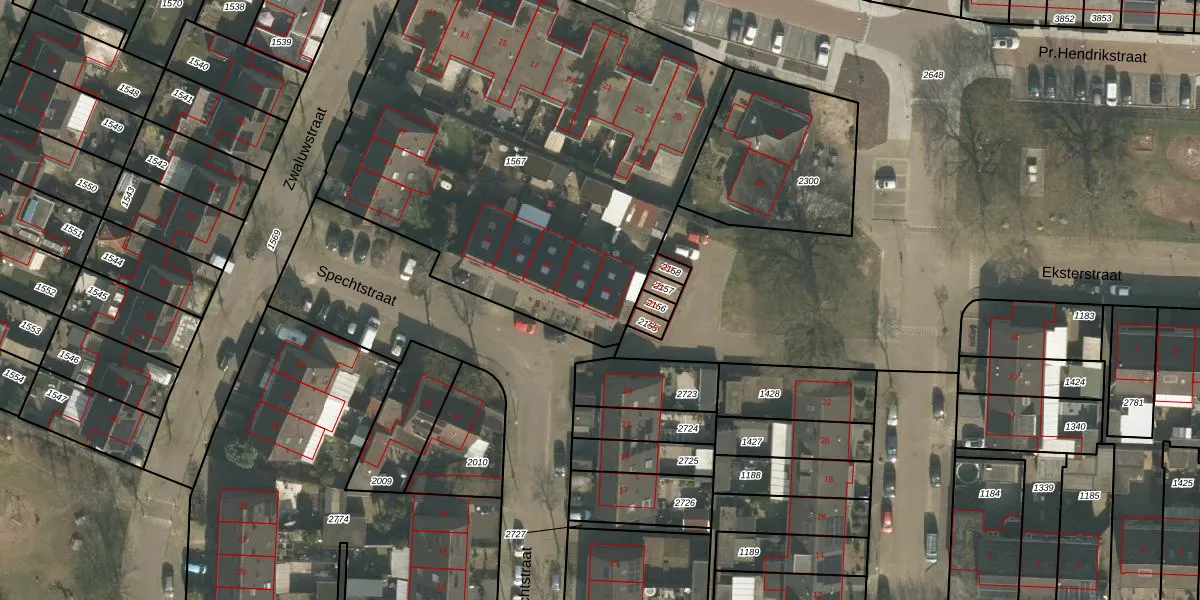 Het perceel waarop Spechtstraat 25 staat heeft een oppervlakte van 2785 m². Dit is een zeer groot perceel. De perceeloppervlakte wordt geregistreerd door het Kadaster. Gedetailleerde informatie over de maten van dit perceel kunt u vinden in het rapport Kadastrale kaart met maatvoering van Spechtstraat 25.