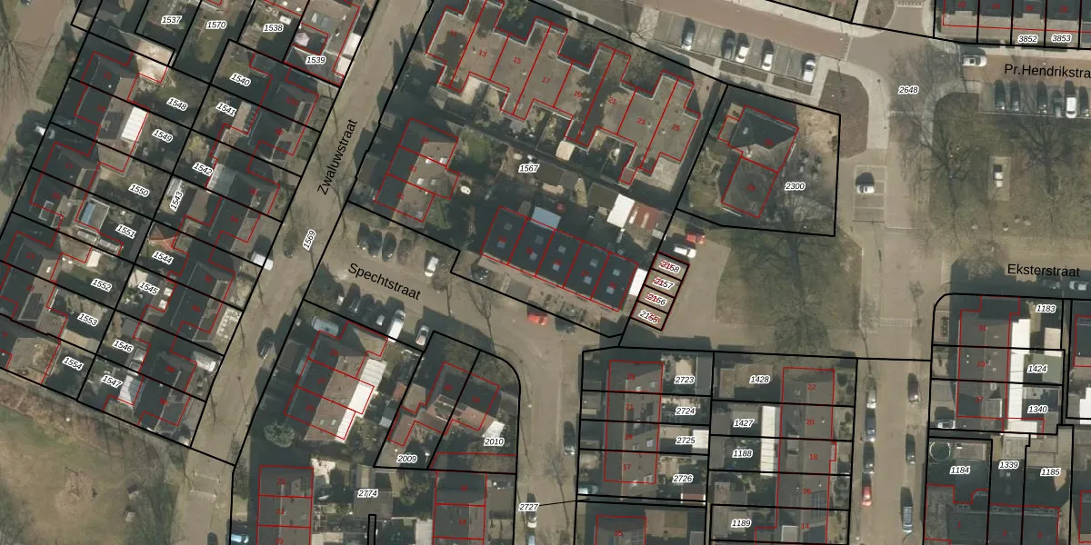 Het perceel waarop Spechtstraat 29 staat heeft een oppervlakte van 2785 m². Dit is een zeer groot perceel. De perceeloppervlakte wordt geregistreerd door het Kadaster. Gedetailleerde informatie over de maten van dit perceel kunt u vinden in het rapport Kadastrale kaart met maatvoering van Spechtstraat 29.