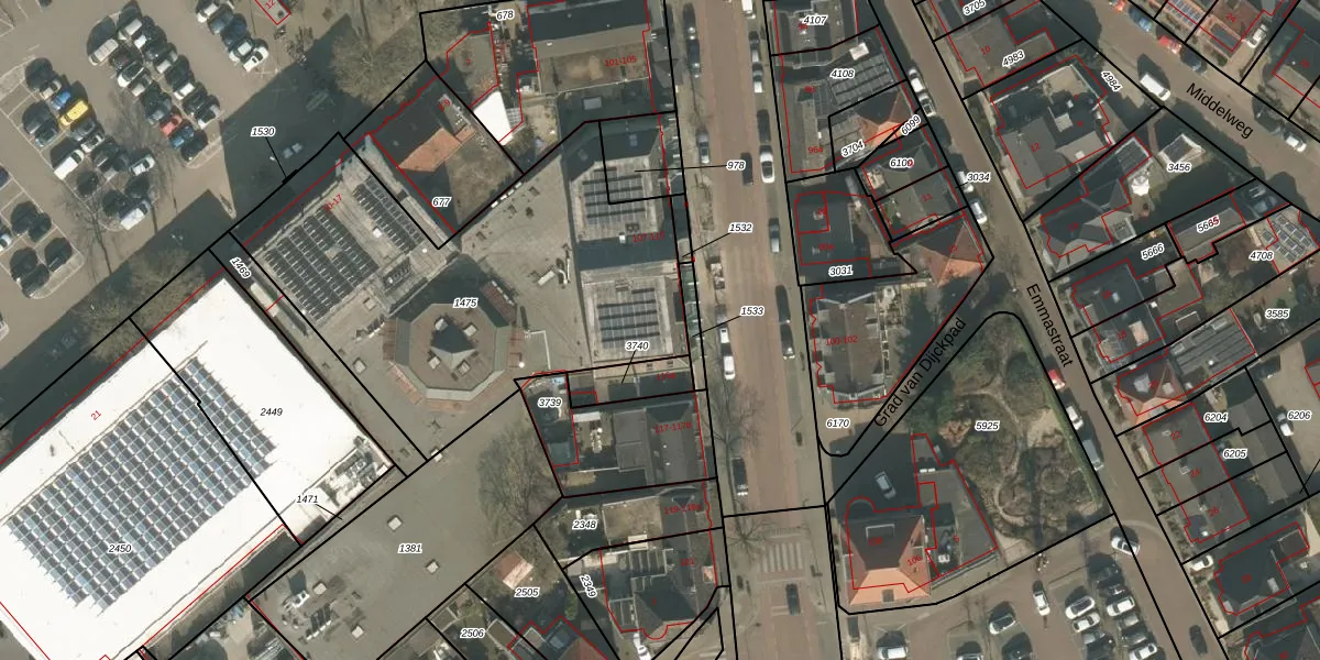Het perceel waarop Spoorstraat 107-c staat heeft een oppervlakte van 1912 m². Dit is een zeer groot perceel. De perceeloppervlakte wordt geregistreerd door het Kadaster. Gedetailleerde informatie over de maten van dit perceel kunt u vinden in het rapport Kadastrale kaart met maatvoering van Spoorstraat 107-c.