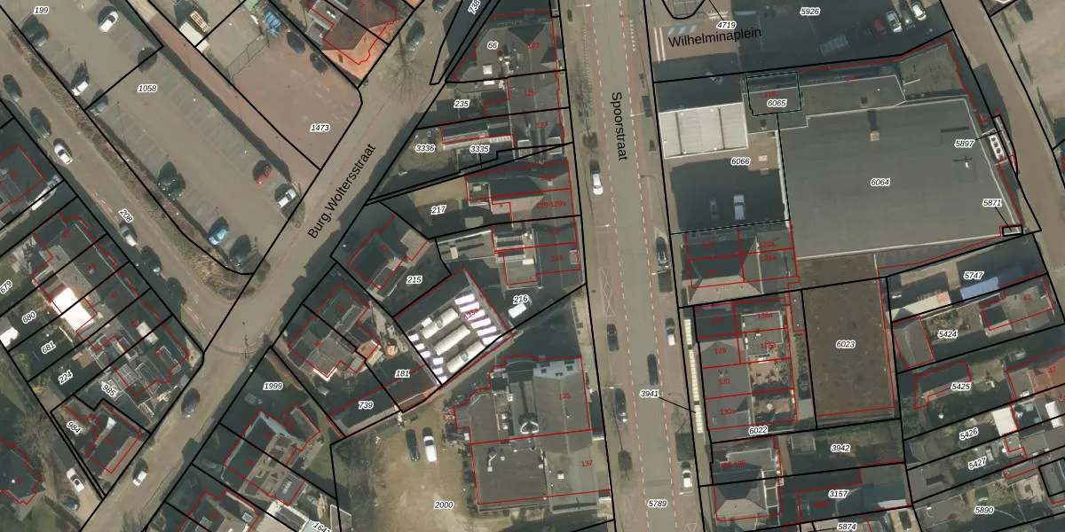 Spoorstraat 133 is gelegen op kadastraal perceel GNP00D216. Deze kadastrale aanduiding is uniek en wordt gebruikt door het Kadaster om eigendomsrechten en andere zakelijke rechten vast te leggen. Het perceel maakt onderdeel uit van de kadastrale gemeente Gennep.