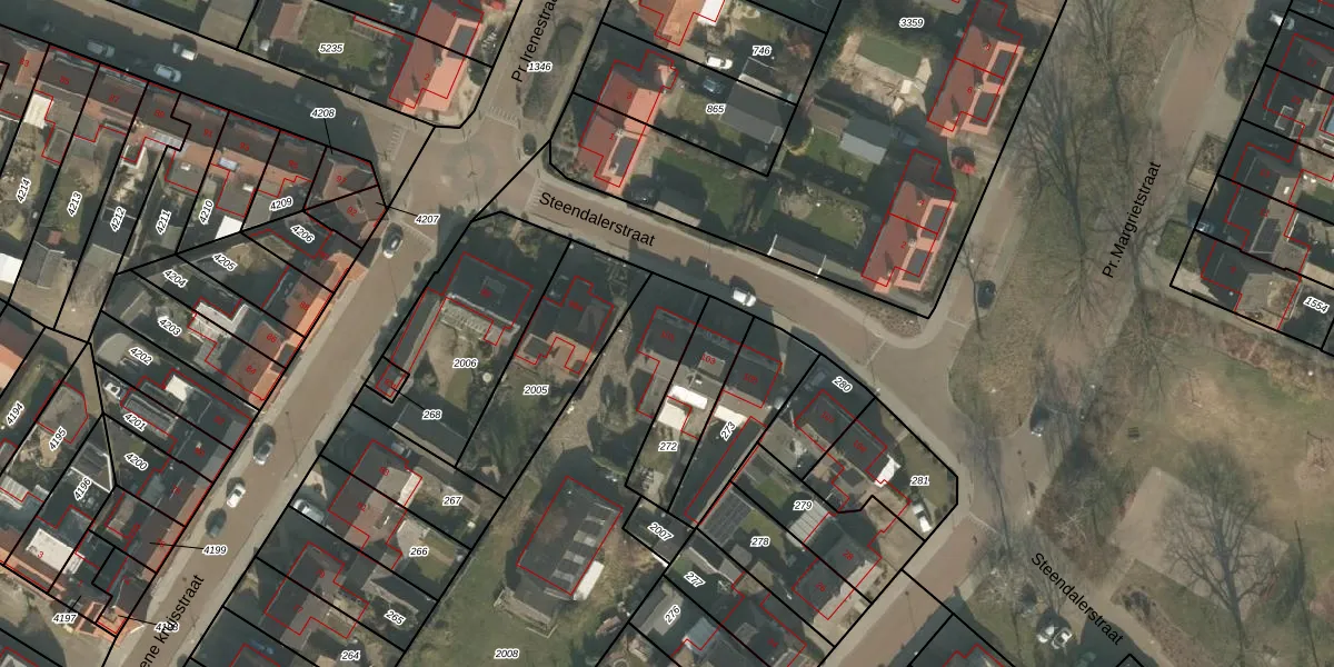 Gebruik de zoekbalk of klik op een perceel voor informatie over de adressen binnen dit perceel.