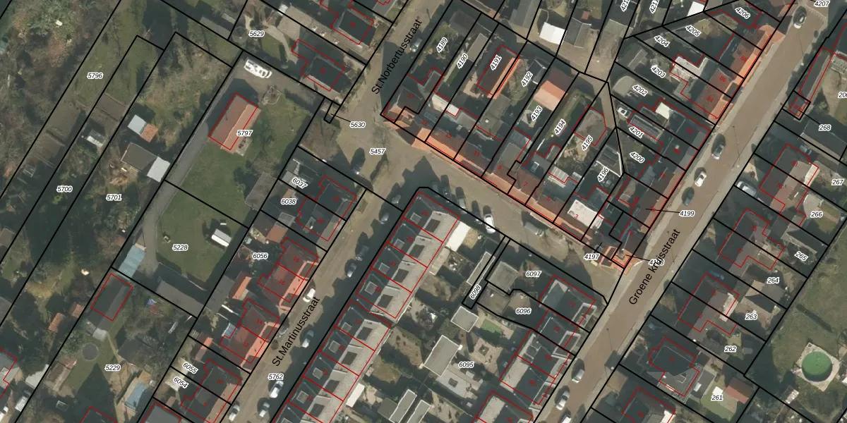 St.Martinusstraat 25 is gelegen op kadastraal perceel GNP00B6095. Deze kadastrale aanduiding is uniek en wordt gebruikt door het Kadaster om eigendomsrechten en andere zakelijke rechten vast te leggen. Het perceel maakt onderdeel uit van de kadastrale gemeente Gennep.