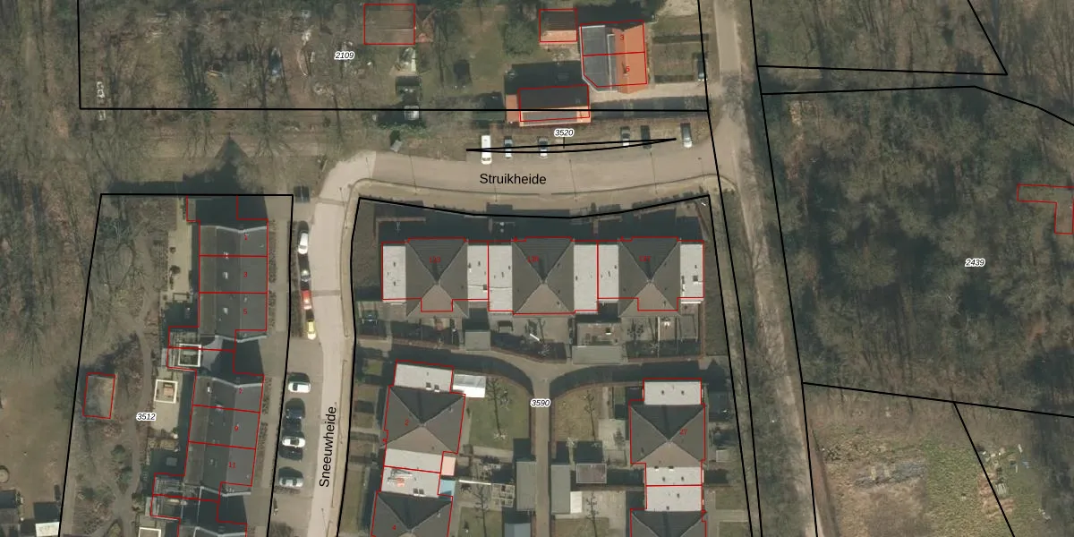 Struikheide 135 is gelegen op kadastraal perceel GNP00F3590. Deze kadastrale aanduiding is uniek en wordt gebruikt door het Kadaster om eigendomsrechten en andere zakelijke rechten vast te leggen. Het perceel maakt onderdeel uit van de kadastrale gemeente Gennep.