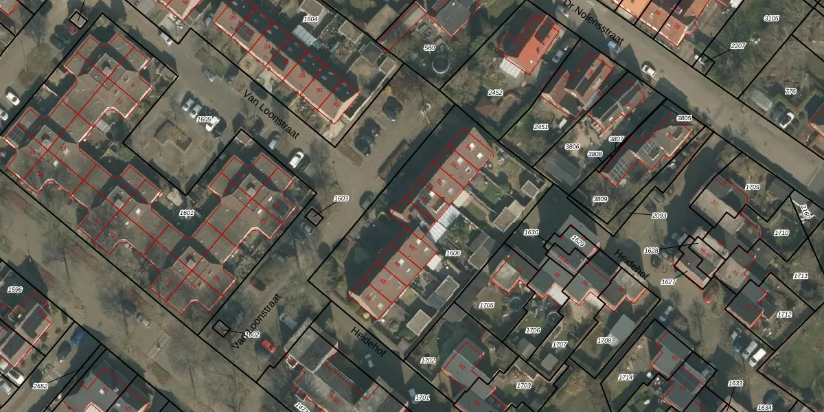 Het perceel waarop Van Loonstraat 42 staat heeft een oppervlakte van 1685 m². Dit is een zeer groot perceel. De perceeloppervlakte wordt geregistreerd door het Kadaster. Gedetailleerde informatie over de maten van dit perceel kunt u vinden in het rapport Kadastrale kaart met maatvoering van Van Loonstraat 42.