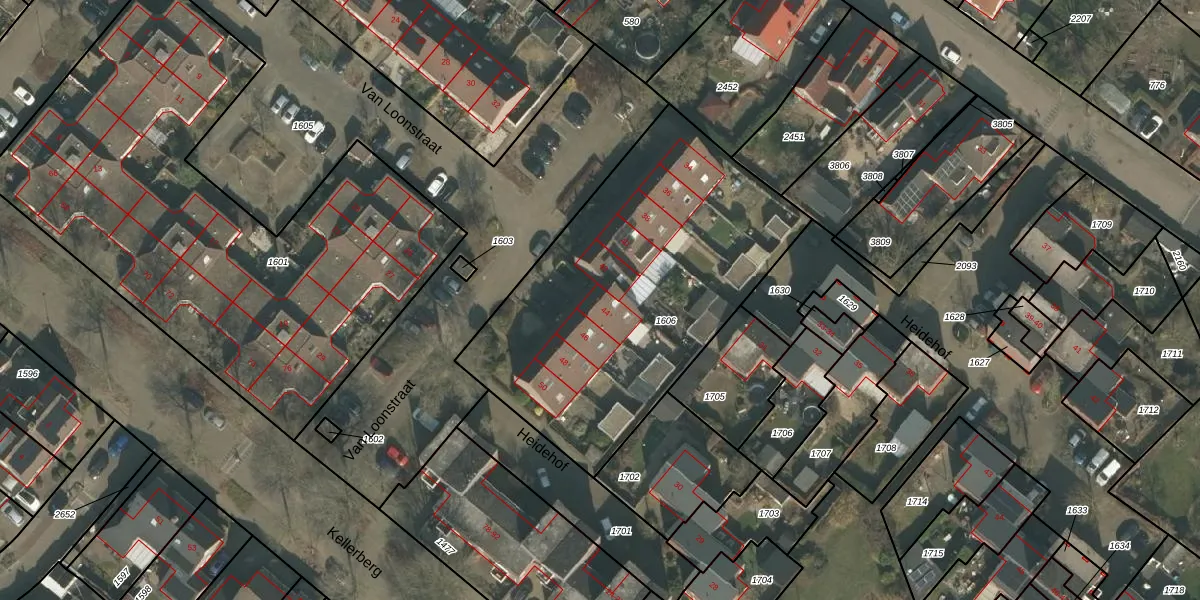 Het perceel waarop Van Loonstraat 44 staat heeft een oppervlakte van 1685 m². Dit is een zeer groot perceel. De perceeloppervlakte wordt geregistreerd door het Kadaster. Gedetailleerde informatie over de maten van dit perceel kunt u vinden in het rapport Kadastrale kaart met maatvoering van Van Loonstraat 44.