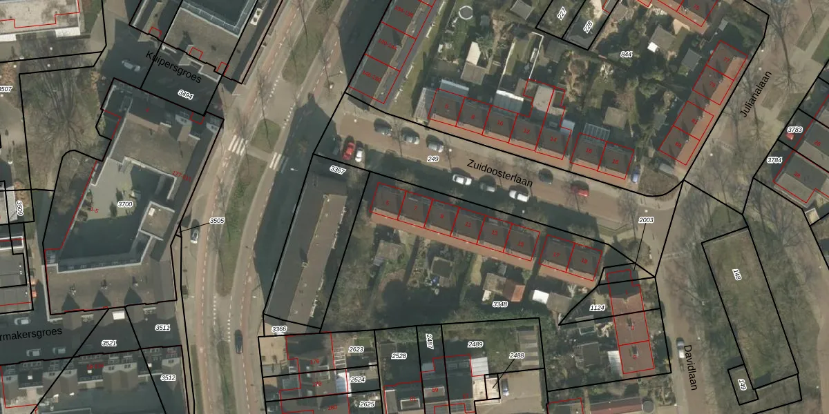 Het perceel waarop Zuidoosterlaan 7 staat heeft een oppervlakte van 2251 m². Dit is een zeer groot perceel. De perceeloppervlakte wordt geregistreerd door het Kadaster. Gedetailleerde informatie over de maten van dit perceel kunt u vinden in het rapport Kadastrale kaart met maatvoering van Zuidoosterlaan 7.