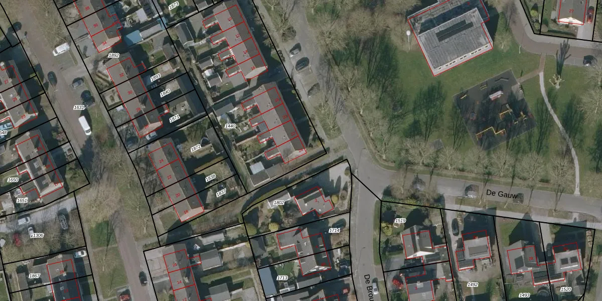 Het perceel waarop De Gauw 24 staat heeft een oppervlakte van 1806 m². Dit is een zeer groot perceel. De perceeloppervlakte wordt geregistreerd door het Kadaster. Gedetailleerde informatie over de maten van dit perceel kunt u vinden in het rapport Kadastrale kaart met maatvoering van De Gauw 24.