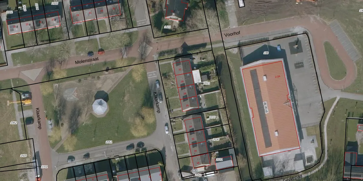 Het perceel waarop Klaarkamp 28 staat heeft een oppervlakte van 1015 m². Dit is een zeer groot perceel. De perceeloppervlakte wordt geregistreerd door het Kadaster. Gedetailleerde informatie over de maten van dit perceel kunt u vinden in het rapport Kadastrale kaart met maatvoering van Klaarkamp 28.