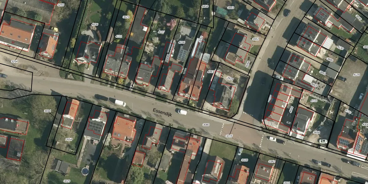 Het perceel waarop Essendijk 38 staat heeft een oppervlakte van 326 m². Dit is een groot perceel. De perceeloppervlakte wordt geregistreerd door het Kadaster. Gedetailleerde informatie over de maten van dit perceel kunt u vinden in het rapport Kadastrale kaart met maatvoering van Essendijk 38.