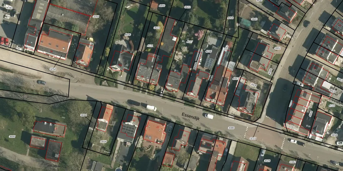 Het perceel waarop Essendijk 42 staat heeft een oppervlakte van 565 m². Dit is een groot perceel. De perceeloppervlakte wordt geregistreerd door het Kadaster. Gedetailleerde informatie over de maten van dit perceel kunt u vinden in het rapport Kadastrale kaart met maatvoering van Essendijk 42.