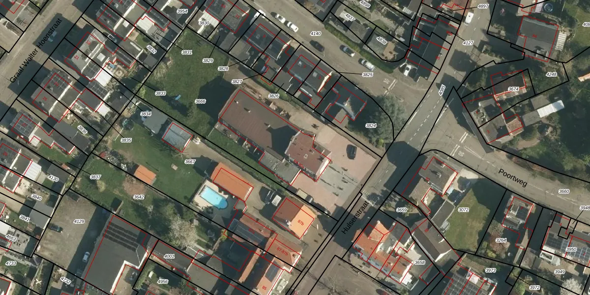 Het perceel waarop Hulserstraat 89-f staat heeft een oppervlakte van 2265 m². Dit is een zeer groot perceel. De perceeloppervlakte wordt geregistreerd door het Kadaster. Gedetailleerde informatie over de maten van dit perceel kunt u vinden in het rapport Kadastrale kaart met maatvoering van Hulserstraat 89-f.