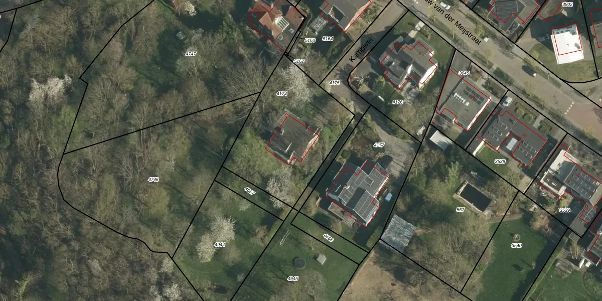 Kampwei 1 is gelegen op kadastraal perceel GLE02A4174. Deze kadastrale aanduiding is uniek en wordt gebruikt door het Kadaster om eigendomsrechten en andere zakelijke rechten vast te leggen. Het perceel maakt onderdeel uit van de kadastrale gemeente Geulle.