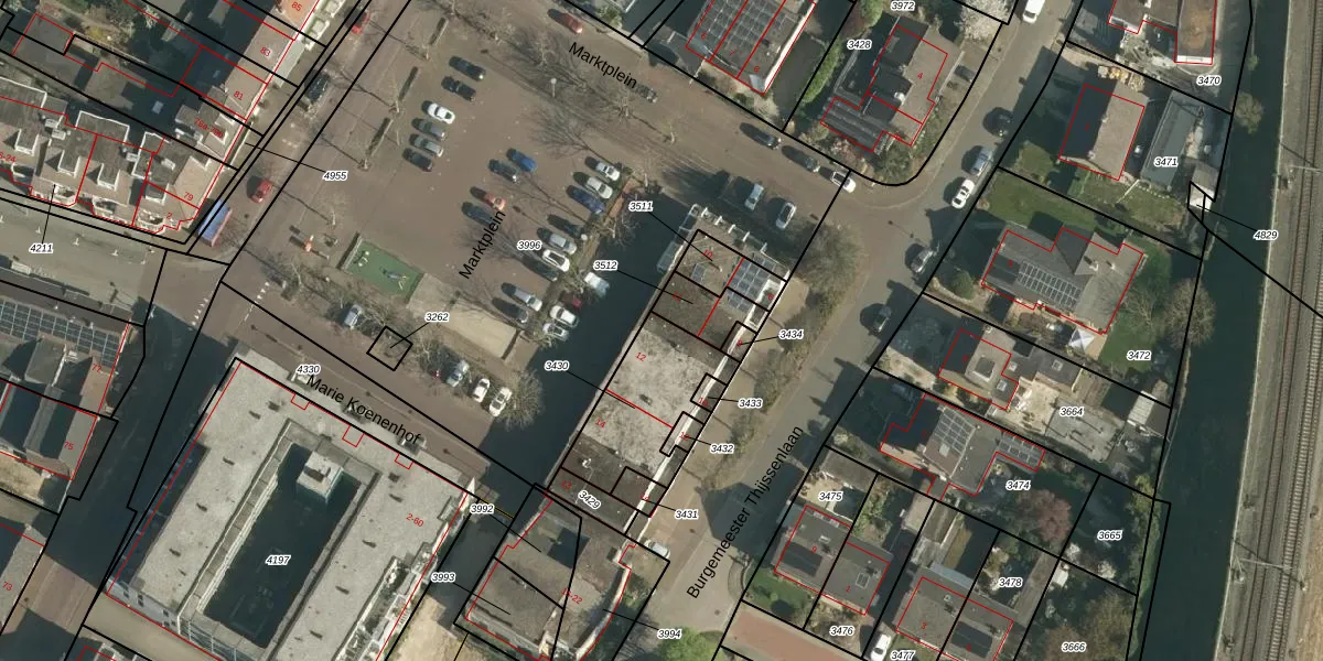 Marktplein 12 is gelegen op kadastraal perceel GLE02B3430. Deze kadastrale aanduiding is uniek en wordt gebruikt door het Kadaster om eigendomsrechten en andere zakelijke rechten vast te leggen. Het perceel maakt onderdeel uit van de kadastrale gemeente Geulle.